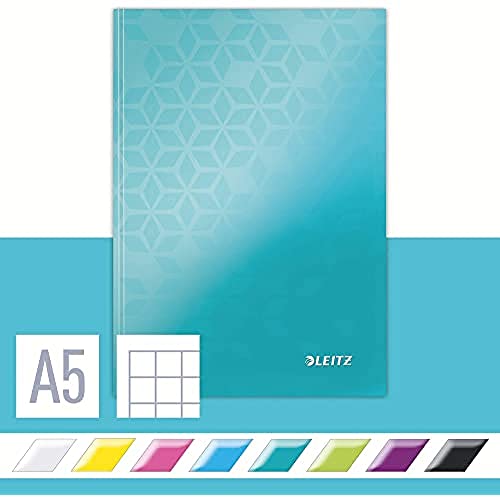 Leitz WOW Quaderno a Quadretti per Appunti con Copertina Rigida, Formato A5, 160 Pagine, Carta 90 gr/mq Certificata FSC, Acquamarina, 46281051