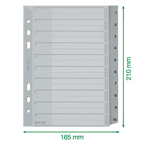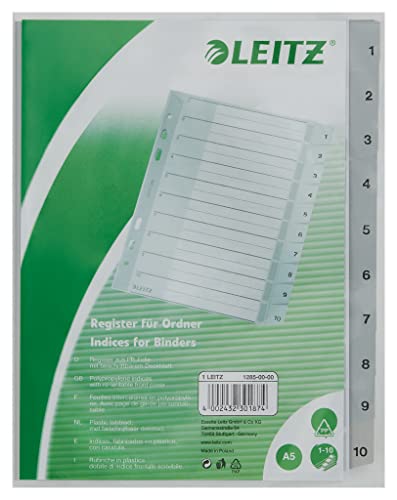Leitz 1285 - Registro numerico in plastica, 1-10, 10 fogli, formato DIN A5, 16,5 x 21 mm