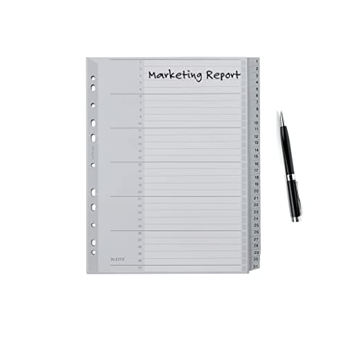 Leitz Rubrica con Tasti 1-31, Formato A4, Formato Extra Largo, Grigio, Divisori in Polipropilene Robusto con Pagina Indice, 12810000