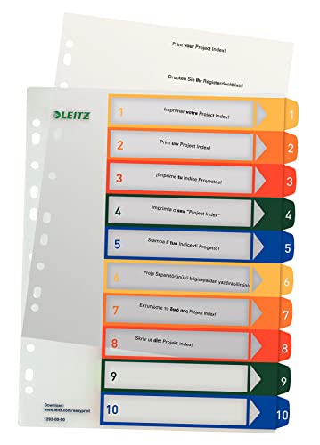 Leitz Rubrica con Tasti 1-10, Stampabile Al Pc, Formato A4, Polipropilene Robusto, Formato Extra Largo, Bianco/Multicolore, 12930000
