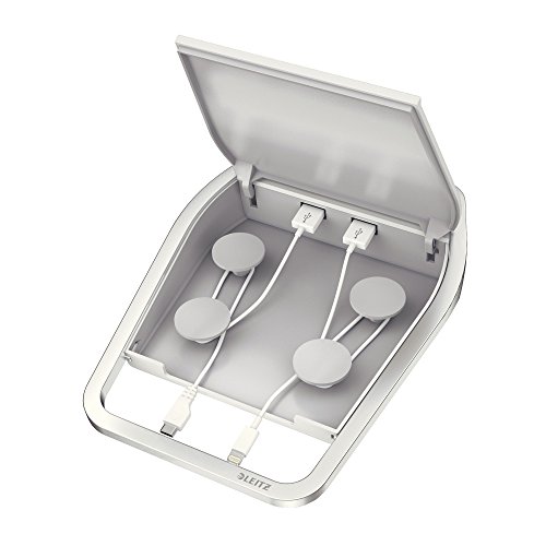 Leitz Style 65120004 Caricatore da Tavolo, 2 Porte USB, Cavo Corto Micro USB Incluso, Bianco Artico