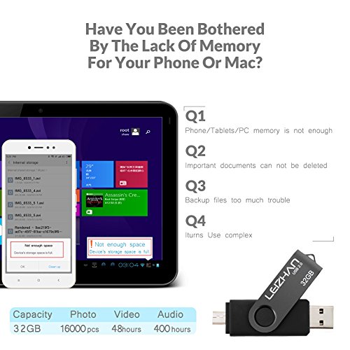 Leizhan Chiavetta USB 32GB,Flash Drive USB 2.0 OTG Memory Stick per Telefono Huawei Samsung Android Tablet Mac PC-Nero