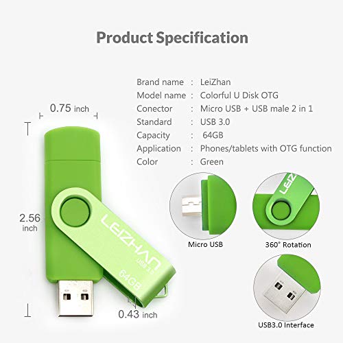 Leizhan Chiavetta USB 64GB,Flash Drive USB 3.0 OTG Memory Stick per Telefono Huawei Samsung Android Tablet Mac PC-Verde
