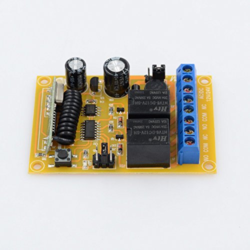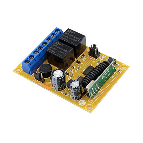 Questo radiocomando è in uscita relè, che è possibile controllare dispositivi AC o CC. Inoltre, questo ricevitore ha due jumper. Un jumper è impostato per la modalità di controllo. e secondo jumper è per cambiare la tensione da 12 V a 24 V (o 24 V a 12 V), offre grande comodità per voi, può anche fare più applicazioni.