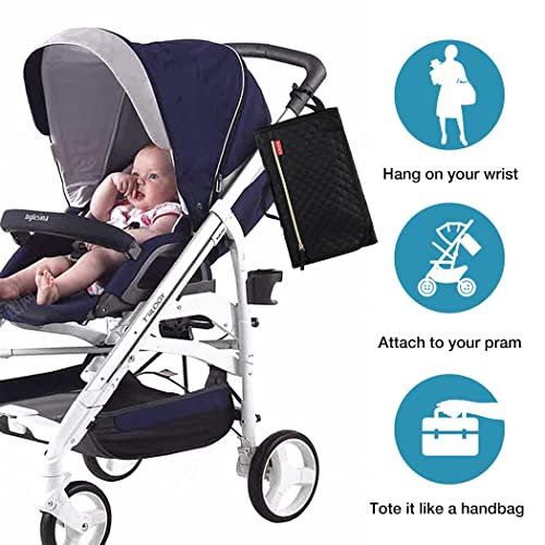 Lekespring Fasciatoio Portatile Pieghevole da Viaggio XL,Fasciatoio Pieghevole e Impermeabile con Cuscino Comodo e Tasche a un Dispenser di Salviette,Fasciatoio Materassino Regali per Neonato - Nero