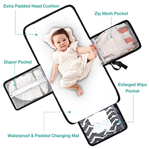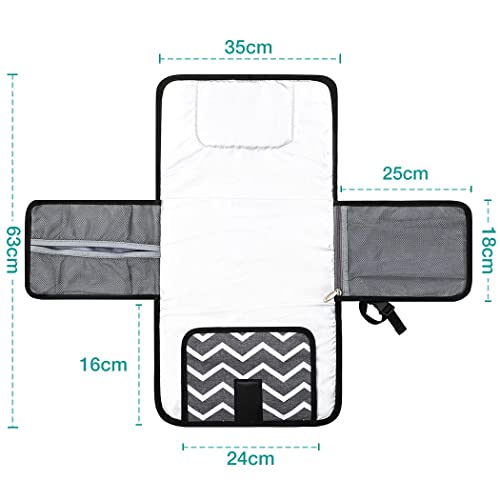Lekespring Fasciatoio Portatile Pieghevole da Viaggio XL,Fasciatoio Pieghevole e Impermeabile con Cuscino Comodo e Tasche a un Dispenser di Salviette,Fasciatoio Materassino Regali per Neonato,Nero 03