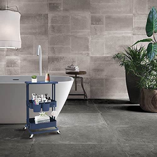 Lekind carrello a 3 ripiani carrello portaoggetti da cucina con ruote, Carrelli da portata in altezza, carrello con 2 freni, facile da montare, per bagno, cucina, ufficio, blu