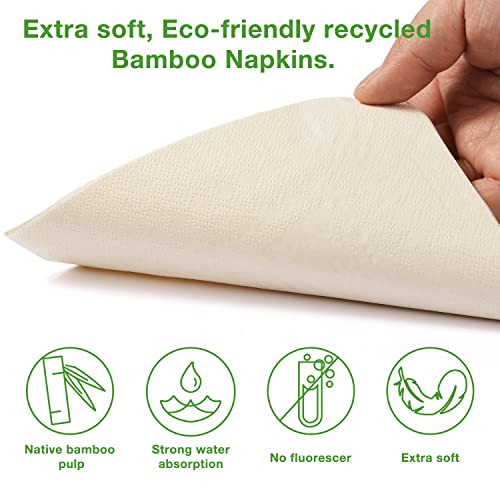 SOFT & STRONG 2 PLY SHEETS - la combinazione perfetta tra la forza del bambù e le fibre morbide che producono un tovagliolo che è forte, durevole e assorbente. Fai sentire speciale ogni ospite usando questi tovaglioli di carta usa e getta. I nostri tovaglioli di bambù hanno una dimensione di 33x33cm(unfold), 16.5x16.5cm(fold), 100/200 Pack.