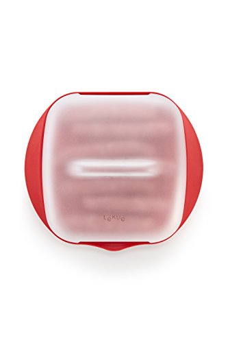 Lekue - Fornello a microonde con coperchio, plastica, Red, 25 x 27.7 x 9.3 cm