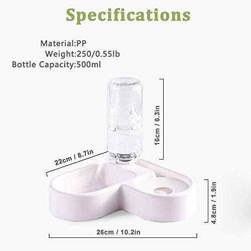 √【Distributore d'acqua per animali domestici 2 in 1】 Questo distributore d'acqua per animali domestici è composto da una ciotola per alimenti e una ciotola per l'acqua ed è dotato di una bottiglia d'acqua da 500 ml di grande capacità in grado di fornire automaticamente cibo e acqua. Usando questa ciotola per animali domestici, puoi risparmiare più tempo e spazio, quindi questa ciotola per animali domestici è una buona scelta per gli animali domestici.