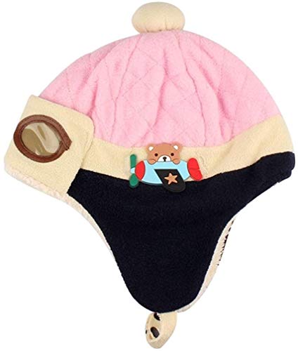 Lelesta Sciarpa e Berretto Pilota con Orecchie Berretti e Cappellini Bambino, Invernale Cappa Calda Beanie Earflap Cappello per i più Piccoli Ragazzino Aviatore Pilota (Rosa)