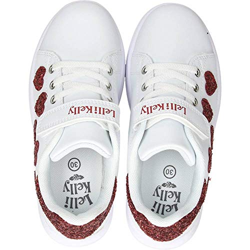 Lelli Kelly Sneakers Bassa con Cuori in Glitter Bianco Rosso, 33