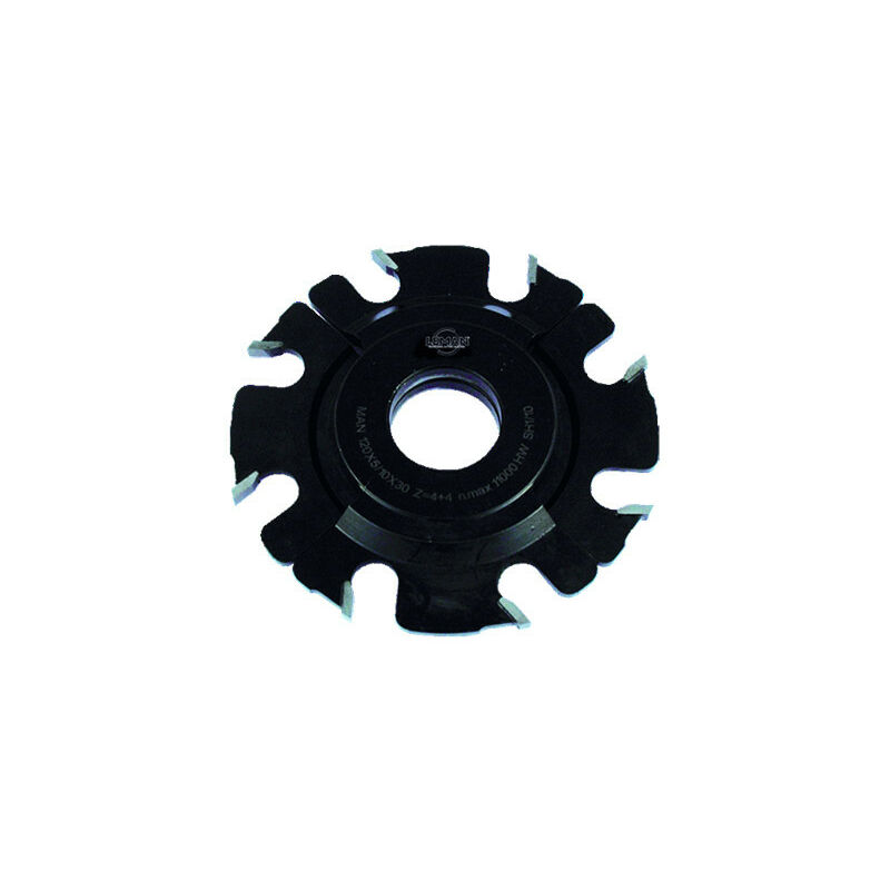 Leman - Fresa per scanalatore estensibile 4+4 diam. 120 al. 30 spessore 5/9,5 - 937.120.30.0510 Fresa per scanalature a 8 tagli in acciaio lavorato. Estendibile da 5 a 9,5 mm. Possibilità di aggiungere una fresa intermedia per realizzare battute fino a 19,5 mm. Regolabile con anelli non forniti.