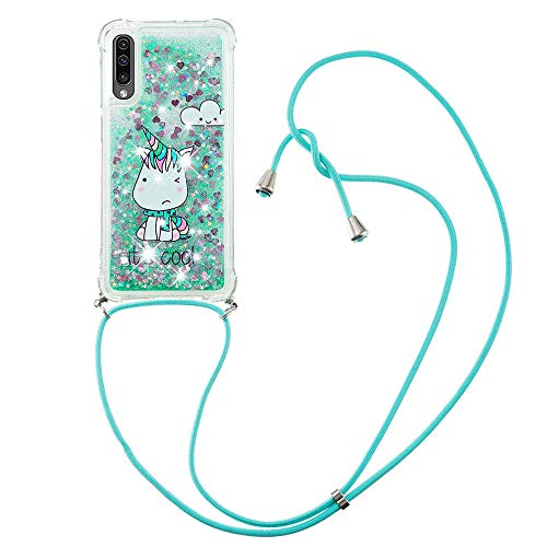 LEMAXELERS Custodia per Cellulare con Corda Collana per Samsung Galaxy A7 2018 Case,Glitter Bling Liquido Sabbie Mobili Bumper Case TPU Cover con Collana Cordoncino Cordino Case,YB GS Monster