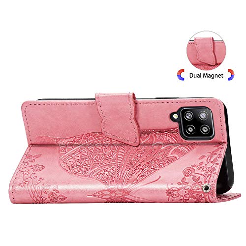 LEMAXELERS Custodia Oppo A52 Cover Portafoglio,Oppo A52 Custodia Bling Strass Brillant Fiore Farfalla Rilievo Wallet Shock-Absorption Magnetica Leather Flip Cover,SD Butterfly Pink