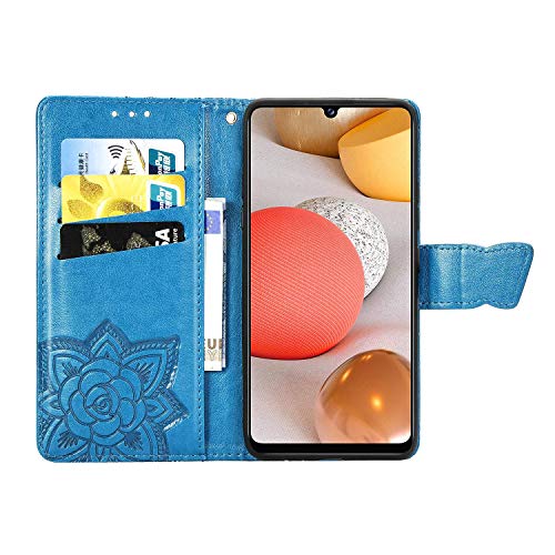 LEMAXELERS Custodia Galaxy A51 5G Cover Portafoglio,Samsung Galaxy A51 5G Custodia Bling Strass Brillant Fiore Farfalla Rilievo Wallet Shock-Absorption Magnetica Leather Flip Cover,SD Butterfly Blue