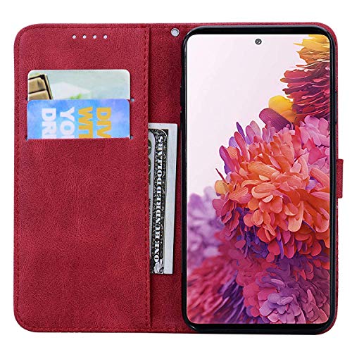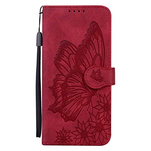 LEMAXELERS Custodia Huawei Y6P Cover Portafoglio,Huawei Y6P Custodia Fiore di Farfalla in Rilievo Wallet Shock-Absorption Magnetica Leather Flip Cover,CY Butterfly Red