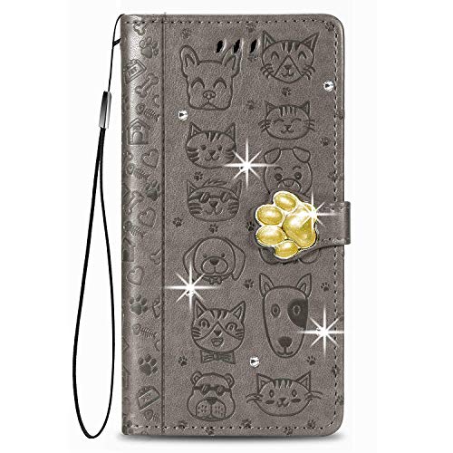 LEMAXELERS Custodia Huawei P Smart 2020 Cover Portafoglio,Huawei P Smart 2020 Custodia Bling Strass Brillant Gatto Cane Wallet Shock-Absorption Magnetica Leather Flip Cover,SD DZ Cat Gray