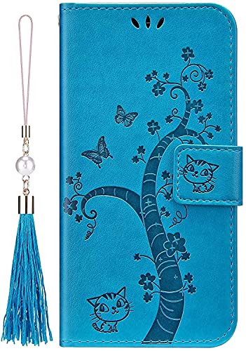 LEMAXELERS Custodia Samsung Galaxy A40 Cover Portafoglio,Galaxy A40 Custodia Rilievo La Farfalla Gatto Wallet Shock-Absorption Magnetica Supporto Protettiva Leather Flip Cover,YKT Cat Blue