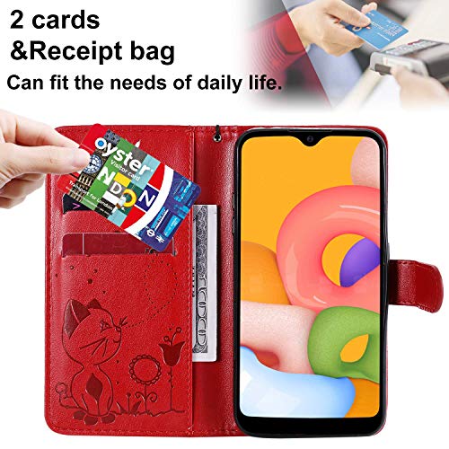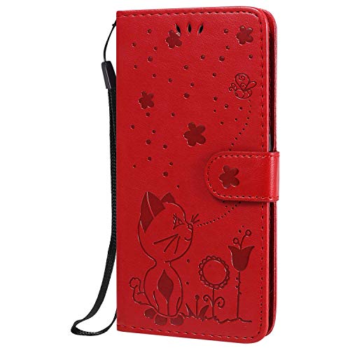 LEMAXELERS Galaxy J5 Pro Custodia Cover Portafoglio,Samsung Galaxy J5 2017 Custodia Fiore di gatto carino in rilievo Wallet Shock-Absorption Magnetica Supporto Leather Flip Cover,KT Cat Red