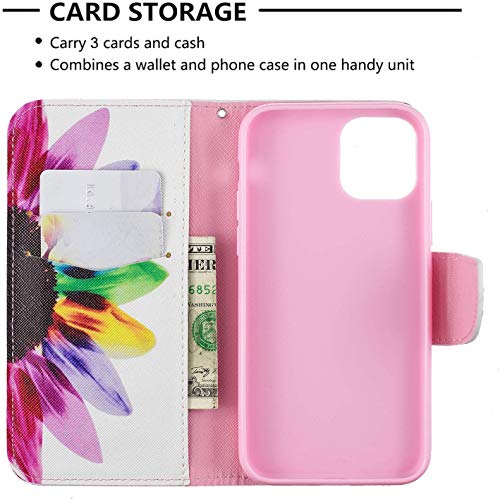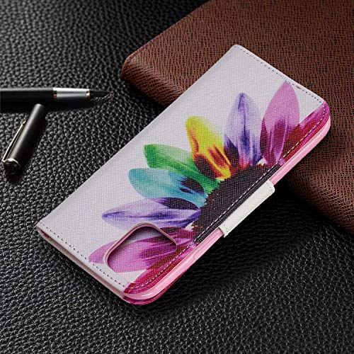 LEMAXELERS Huawei Y6P Custodia Cover Portafoglio,Huawei Y6P Custodia Pittura Colorata Wallet Shock-Absorption Magnetica Supporto Protettiva Bumper Leather Flip Cover,BF Colorful Sunflower