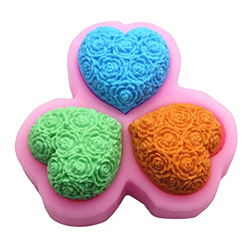 Lembeauty, stampo in silicone a forma di cuore con rose, per sapone, budino, fondente, torte, cioccolato, spose e sposi (colore casuale) E