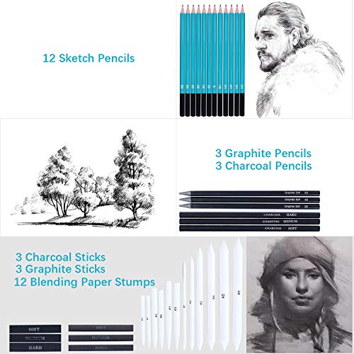 ✅【Sicuro E Non Tossico】- Tutti gli accessori del kit di matite da disegno professionali sono realizzati con materiali ecologici e non contengono sostanze nocive. La matita è di alta qualità, con tratti delicati, colore uniforme, non facile da sfumare e linee morbide sono garantite durante il disegno o lo schizzo.