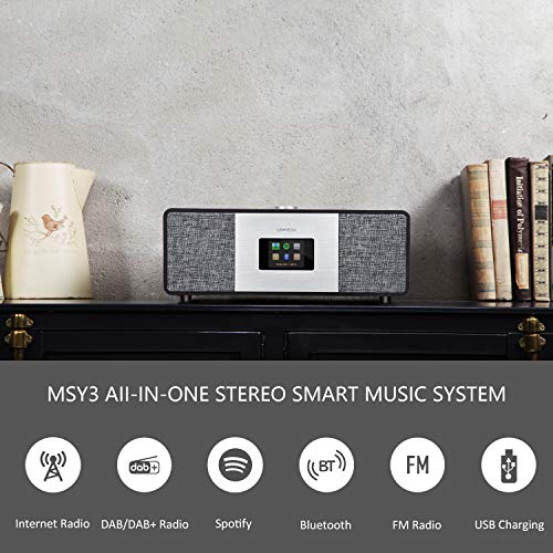 LEMEGA MSY3 Music System,Stereo WIFI Internet Radio, DAB/DAB+e FM Digital Radio,Spotify Connect,Bluetooth,Box in legno,uscita cuffie,allarmi,orologio,preset,telecomando e controllo App - Quercia Nera