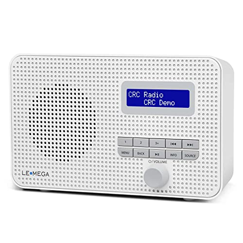 LEMEGA DR1 Radio digitale portatile DAB/DAB+ e FM,radio DAB portatile,doppio allarme,sveglia,20 preimpostate, uscita cuffie, display LCD, batterie portatili o alimentazione di rete - Bianc