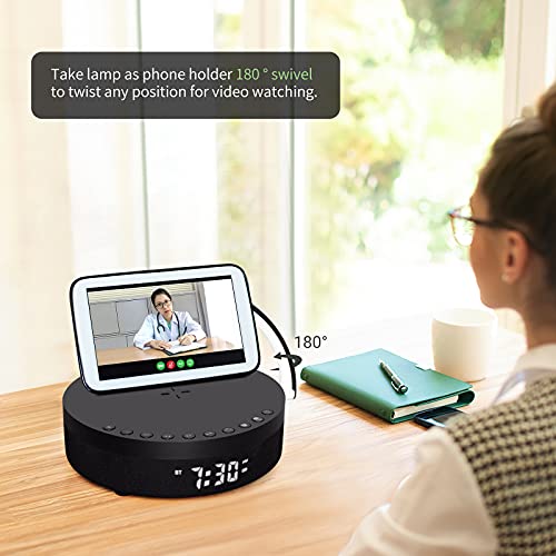Lampada da comodino a LED con sveglia: lampada da comodino con diverse funzioni, livelli di luminosità dimmerabili bassa/media/luminosa, illuminazione calda e bianca commutabile, lampada rotante da 0 a 180 gradi regolabile, è possibile regolare tutti i livelli di luminosità o le posizioni di luce secondo i vostri desideri. Finitura in legno e design in tessuto, è una lampada da comodino perfetta per la lettura per bambini, adolescenti, voi o ovunque in casa.