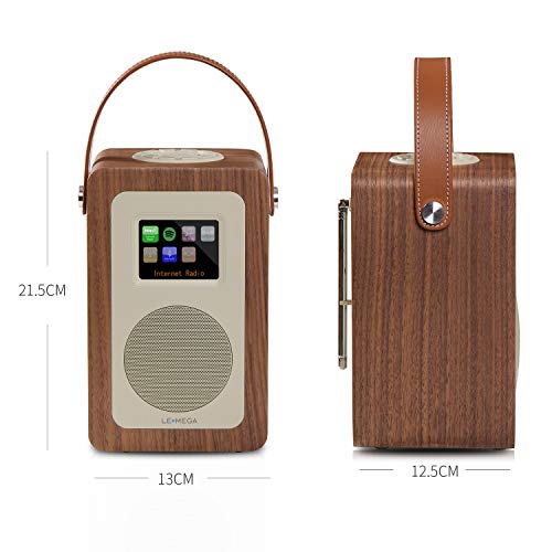 LEMEGA M6 + Smart Radio con radio digitale DAB + e FM e Bluetooth, Wi-Fi, Spotify connect, Aux, batteria integrata e display a colori TFT - Noce