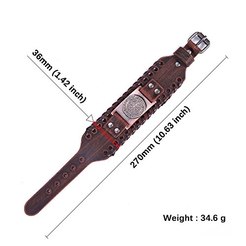 Lemegeton Bracciale largo da uomo con rune nordiche, in pelle, stile vintage, vichingo e Lega, colore: Marrone e rame anticato.