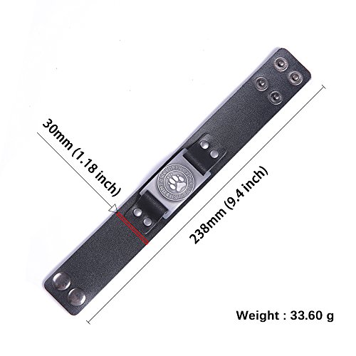 Lemegeton - Bracciale a polsino da uomo in pelle con impronta di lupo vichingo e rune norrene, in stile punk vintage e Lega, colore: Black and Antique Silver, cod. B07DW2YDKL_US