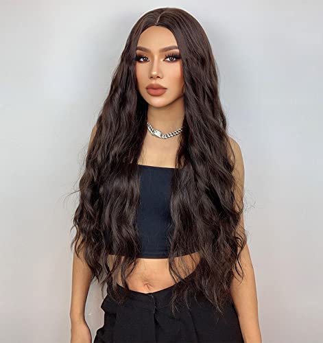 Lemeiz Dark Brown Synthetic Wig Long Curly Wigs for Women Natural Looking Wavy Curly Heat Resistant Hair for Cosplay Lemeiz-216