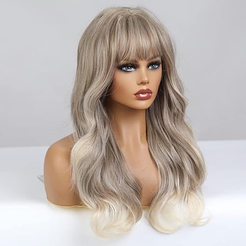LEMEIZ Mixed Blonde Wigs Brown Hair Synthetic Bangs Wig Light Blonde Wigs for White Women Sandy Blonde Wigs Celebrity Wig 22 inch LEMEIZ-127