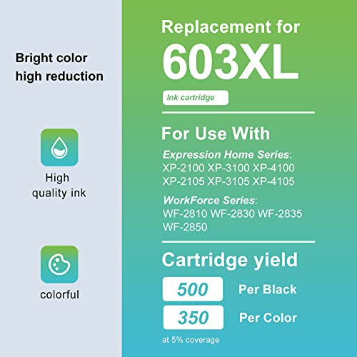 LEMERO UEXPECT - Cartuccia compatibile con Epson 603 XL per Epson Expression Home XP-3100 XP 2100 XP-4100 XP-4105 XP-3105 XP-2105 Workforce WF-2810 WF-2830 WF-2835 WF-2850 (4 pezzi)