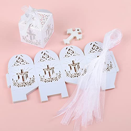 LEMESO 25 pz Scatole Regalo Bianco Bomboniere Comunione Scatoline Portaconfetti Confezione Confetti Segnaposto Battesimo Nozze Sposi Matrimonio Dolci Caramelle Religiose