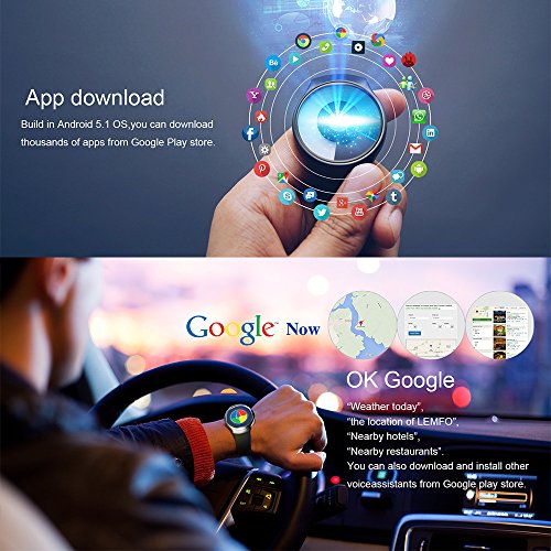 Lemfo LES2 Android 5.1 intelligente dell' orologio GPS WiFi Bluetooth 1 GB + 16 GB cardiofrequenzimetro Smartwatch Phone da polso smartphone per Android 5.1 e iOS8 Argento