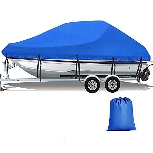 LEMMAN Telo Copri Barca Impermeabile Multi Size in Tessuto Oxford Telo Copri Barca A Tre Strati Con Protezione Solare Telo Copri Barca Per Ormeggio Yacht Rimorchiatore,Blu,20~22FT