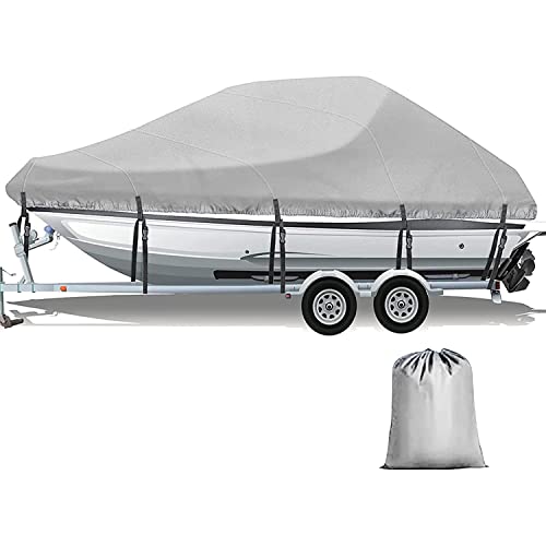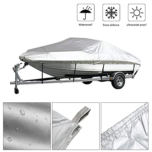 LEMMAN Telo Copri Barca Oxford 210D, Telo Copri Barca Impermeabile E Antipolvere, con Custodia, Copri Barca Multi-Formato, Adatto per Trimarano, Peschereccio, Motoscafo,Argento,16~18FT