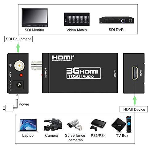 Full HD 1080P: questo convertitore SDI mostra i segnali HDMI su uno schermo SDI, garantisce un'elevata velocità in bit di 2.970 Gbps e un segnale ad alta risoluzione. Supportato con audio integrato, uscita video sincronizzata e audio. Supporta segnale 3G SDI di fascia alta e segnale HD SDI 1.485G. (Supporta solo da Max a 3G-SDI (risoluzione hdmi 1080P), NON supporta la sorgente di segnale 6G-SDI (risoluzione hdmi 4K) / 12G-SDI.)