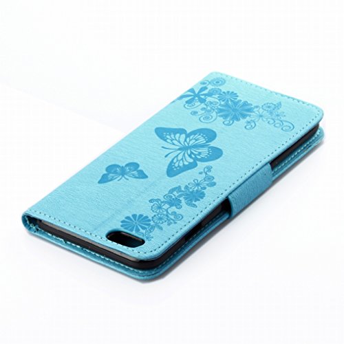 LEMORRY Per Apple iPhone 6 6s 4.7 Custodia Pelle Cuoio Flip Portafoglio Borsa Sottile Protettivo Magnetico Chiusura Morbido Silicone TPU Cover Custodia per iPhone 6s, Farfalla Fortunato Azzurro