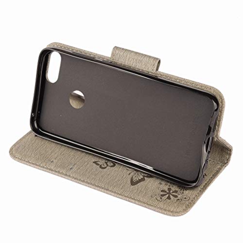 LEMORRY Cover Huawei P Smart 2019 Custodia Pelle Cuoio Portafoglio con Slot per Schede Protettivo Magnetico Morbido Silicone TPU Custodia per Huawei P Smart 2019, Fortunato Farfalla (Grigio)