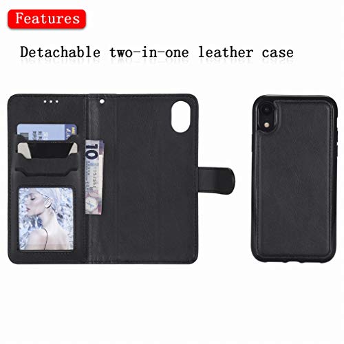LEMORRY Custodia per Apple iPhone XR Multifunzione Custodia Pelle Cuoio Portafoglio Porta Carte di Credito & Cornice 2in1 Protettivo Magnetico Morbido TPU Silicone Cover per iPhone XR (Nero)