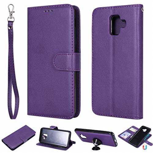 LEMORRY Custodia Per Samsung Galaxy A6 (2018) Multifunzione Custodia Pelle Cuoio Portafoglio Porta Carte di Credito & Cornice 2in1 Magnetico Morbido TPU Silicone Cover per Galaxy A6 (2018) (Viola)