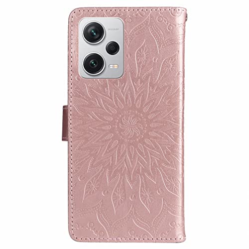 LEMORRY Custodia per Xiaomi Redmi Note 12 Pro+, Cover Redmi Note 12 Pro+ Custodia in Pelle [TPU Silicone] Scheda Slot Cuoio Portafoglio Custodie da Cintura per Xiaomi Note 12 Pro Plus, Rose Oro