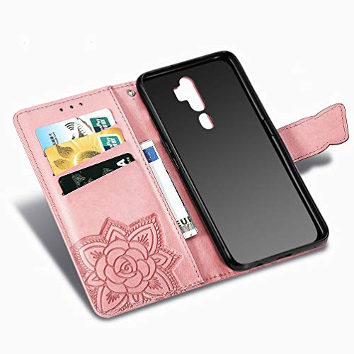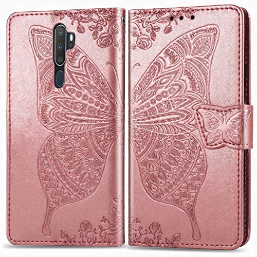 LEMORRY Farfalla Cover per Oppo A5 A9 (2020) Custodia Pelle, Cuoio Portafoglio con Slot per Schede Protettivo Gomma Flip Cover Morbido Silicone TPU Custodia per Oppo A5, A9 (2020), Oro Rosa