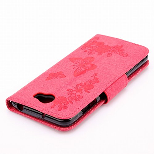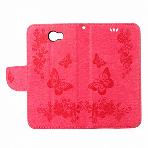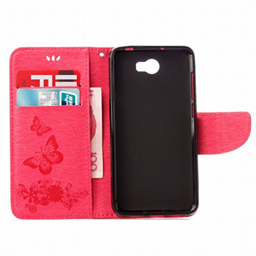 LEMORRY Per Huawei Y5 2 Custodia Pelle Cuoio Flip Portafoglio Borsa Protettivo Magnetico Morbido Silicone TPU Cover Custodia per Huawei Y5 2 (Huawei Y5II), Farfalla Fortunato Rosa