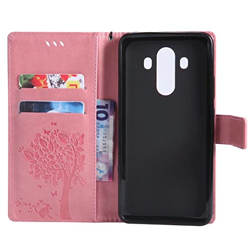 LEMORRY Per Huawei Mate 10 Pro Custodia Pelle Cuoio Flip Portafoglio Borsa Sottile Protettivo Magnetico Supporto Morbido Silicone TPU Cover Custodia per Huawei Mate 10 Pro, Fortunato Albero (Rose)