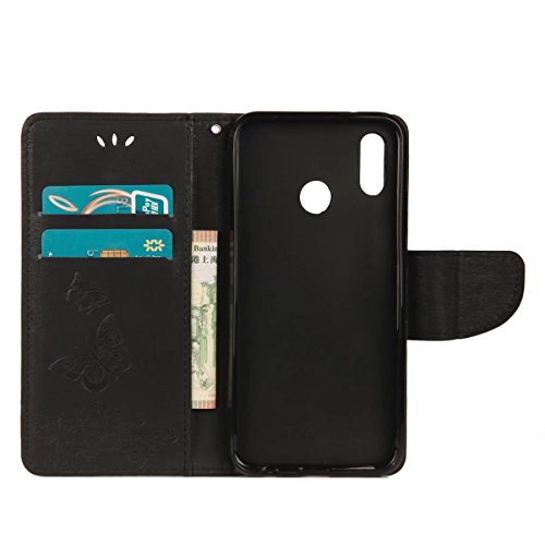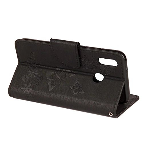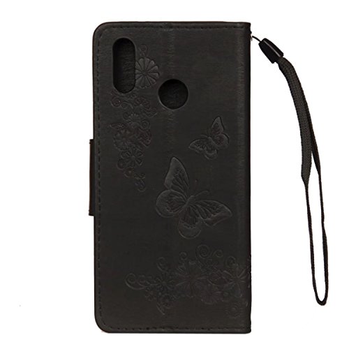 LEMORRY Per Huawei P20 Lite Custodia Pelle Cuoio Flip Portafoglio Borsa Sottile Bumper Protettivo Magnetico Chiusura Morbido Silicone TPU Cover Custodia per Huawei P20 Lite, Fortunato Farfalla (Nero)